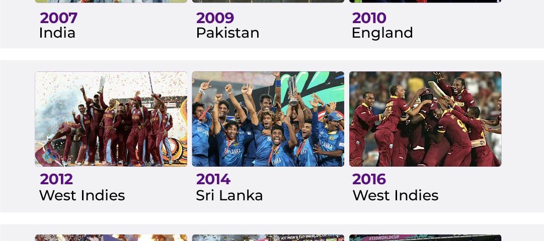 England and the West Indies have both also recorded two tournament wins.