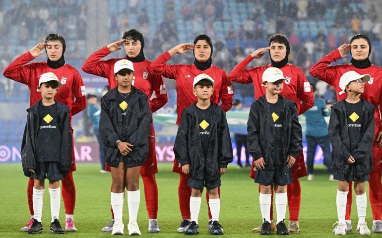 Iran women’s football team sing anthem amid safety concerns during war